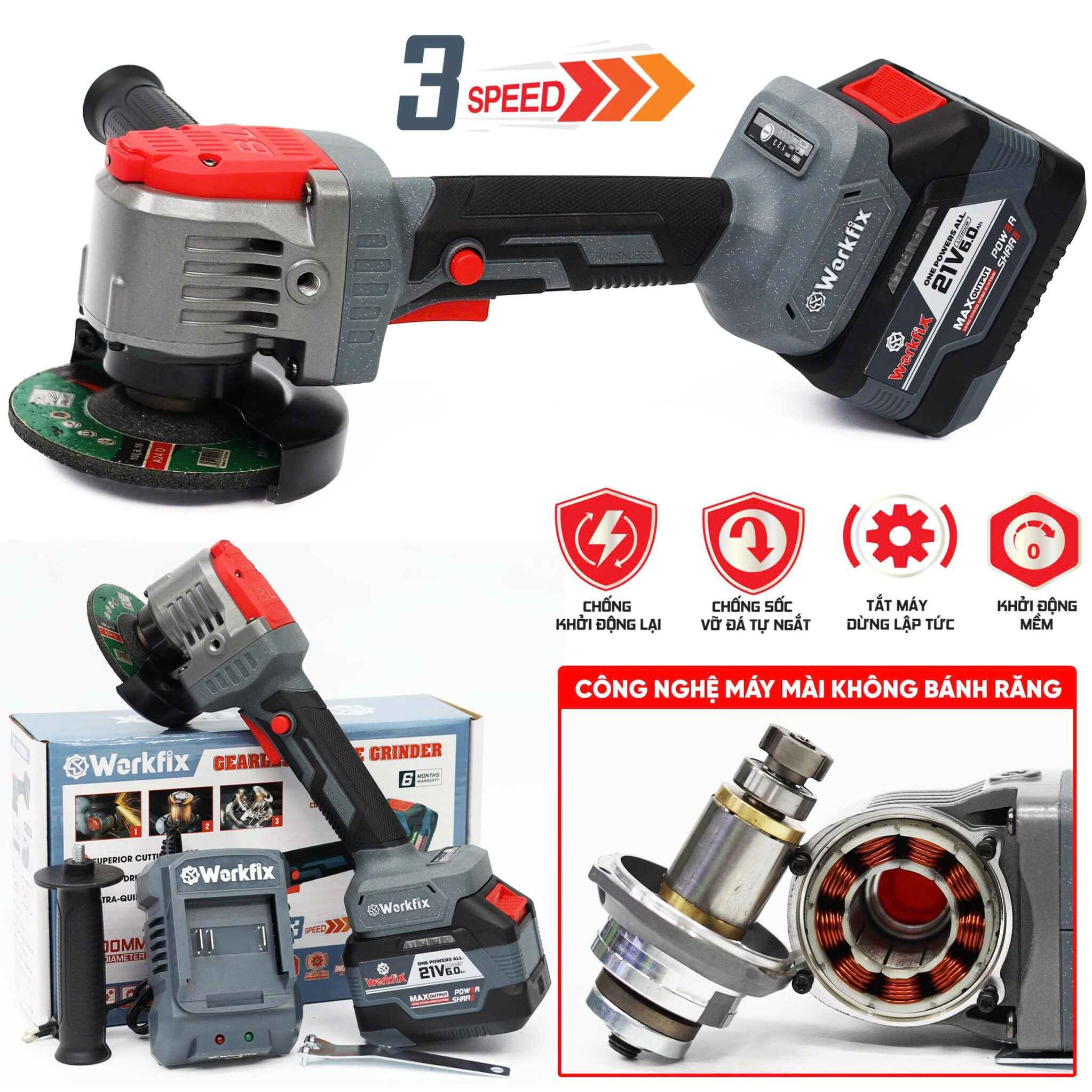 Máy Mài Workfix WF-AG11000G động cơ không bánh răng, trục M10, 3 tốc độ, chống lật cổ tay, rơi tự ngắt