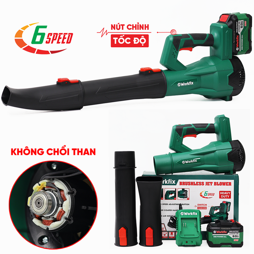 Máy thổi bụi pin, thổi lá Workfix WF-TL680M, 6 cấp độ gió